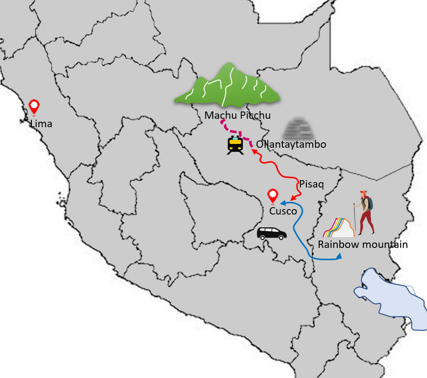 Travel Itinerary: Cusco city Rainbow mountain The Sacred valley & Machu Picchu inca citadel