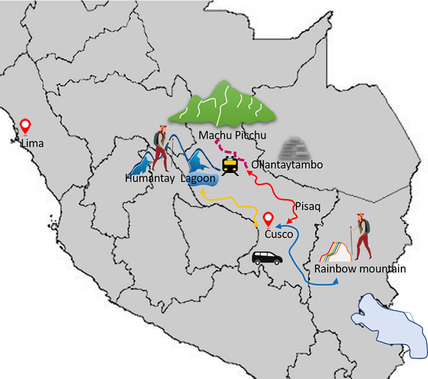 Travel Itinerary: Cusco city Rainbow mountain Humantay Lake & Machu Picchu inca citadel