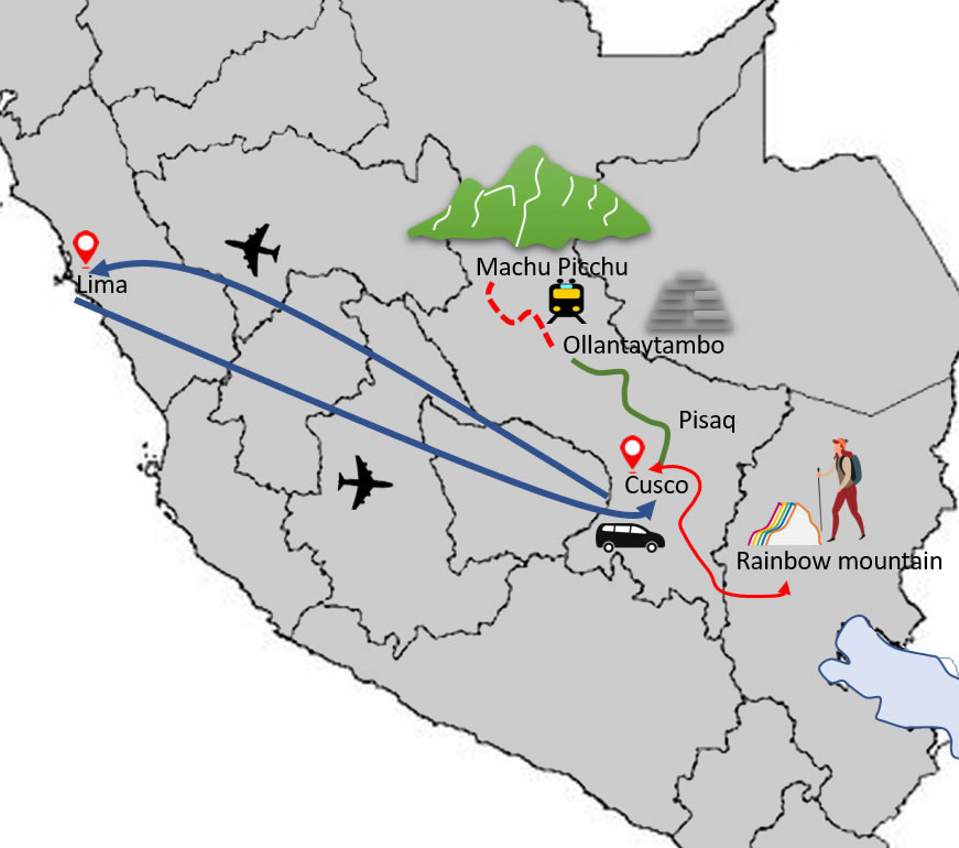 Travel Itinerary: Lima city Cusco city Rainbow mountain The Sacred valley Machu Picchu inca citadel