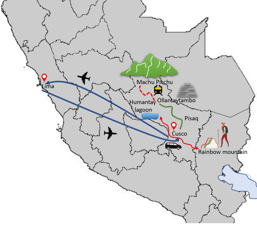 Travel Itinerary: Lima city Cusco city Humantay Lagoon Rainbow mountain The Sacred valley Machu Picchu inca citadel