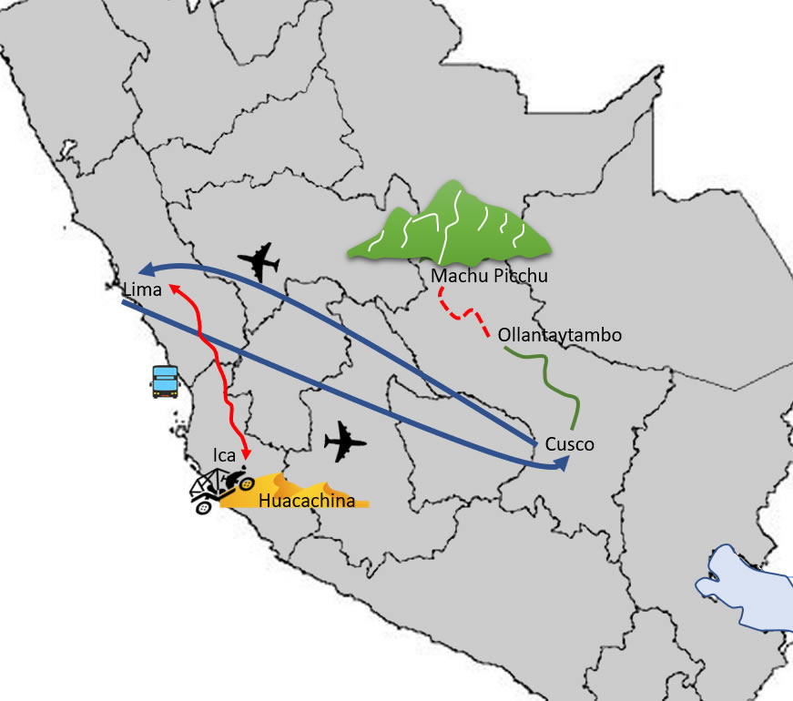 Travel Itinerary: Lima city Huacachina oasis Cusco city The Sacred valley & Machu Picchu inca citadel