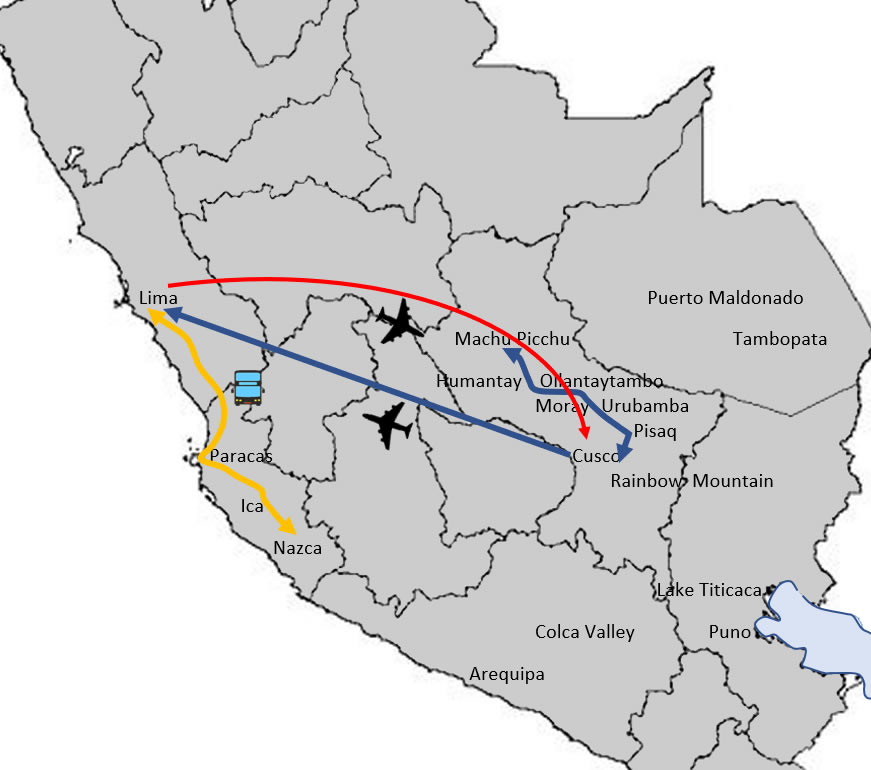 Travel Itinerary: Lima city Paracas Ballestas islands Huacachina oasis Nazca lines Cusco city The Sacred valley & Machu Picchu inca citadel